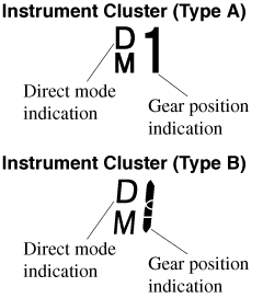 While in direct mode, the D and M indication illuminate and the gear position in use is illuminated.