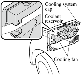 If the cooling fan does not operate while the engine is running, the engine temperature will increase. Stop the engine and call an Authorized Mazda Dealer.