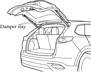 Do not modify or replace the liftgate damper stay. Consult an Authorized Mazda Dealer if a liftgate damper stay is deformed or damaged for reasons such as a collision or if there is some other problem.