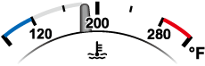 Displays the engine coolant temperature. The blue range of the gauge indicates that the engine coolant temperature is low, and the red range of the gauge indicates that the engine coolant temperature is high and overheating.