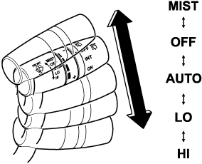 When removing ice or snow, or cleaning the windshield, always make sure the wiper lever is in the OFF position.