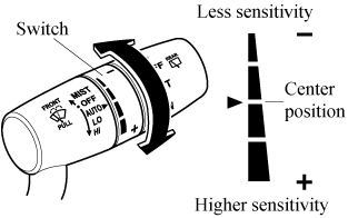 From the center position (normal), rotate the switch upward for higher sensitivity (faster response) or rotate it downward for less sensitivity (slower response).