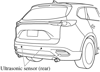 The ultrasonic sensors (rear) function by emitting ultrasonic waves which are reflected off obstructions at the rear and the returning ultrasonic waves are picked up by the ultrasonic sensors (rear).