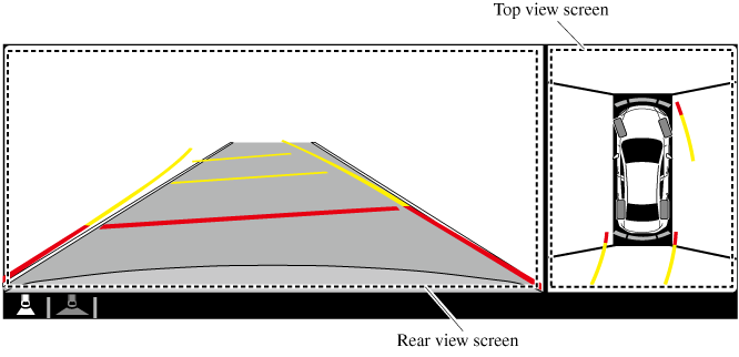 Displays the image of the area around the vehicle and the rear of the vehicle.