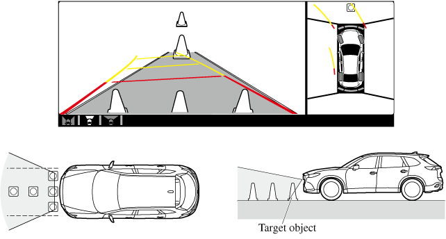 The parking sensor detection range has limitations. For example, obstructions closing in from the side and objects short in height may not be detected. Always confirm the safety around the vehicle visually when driving.
