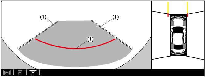 Extended vehicle width lines and distance guide lines (blue & red) |
