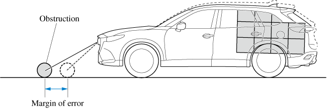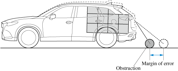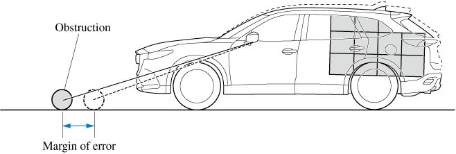If there is a steep up or down grade in the road at the front or rear of the vehicle, obstructions picked up by the camera can appear farther or closer than the actual distance from the vehicle.