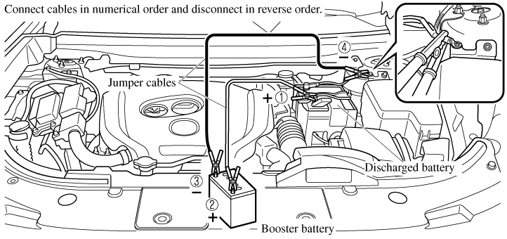 Make sure that the jumper cables are securely connected so that they do not disconnect due to engine vibrations.