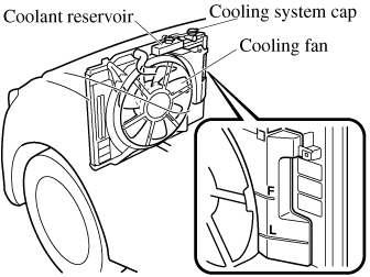 If the cooling fan does not operate while the engine is running, the engine temperature will increase. Stop the engine and call an Authorized Mazda Dealer.