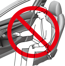 When an adult or large child sits on the front passenger seat, decreasing the total seated weight on the front passenger seat required for air bag deployment is dangerous. The front passenger seat weight sensors will detect the reduced total seated weight condition and the front passenger front and side air bags and knee air bags, and the seat belt pretensioner system will not deploy during an accident. The front passenger will not have the supplementary protection of the air bag, which could result in serious injury. Decreasing the total seated weight on the front passenger seat could result in an air bag not deploying under the following conditions, for example: