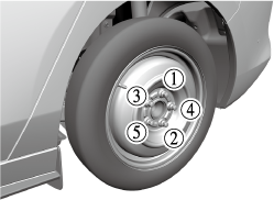 5. Use the lug wrench to tighten the nuts in the order shown.
