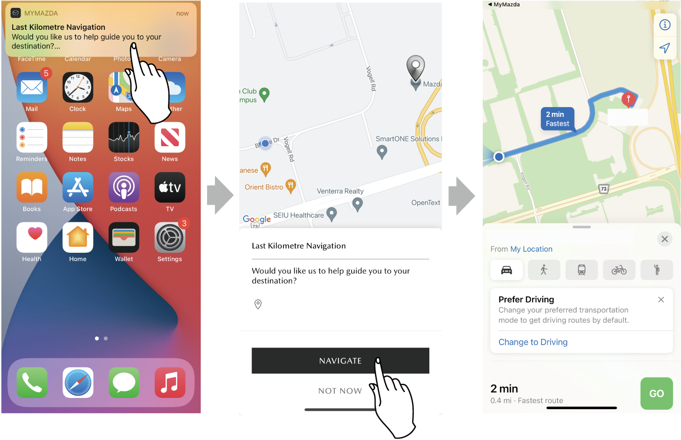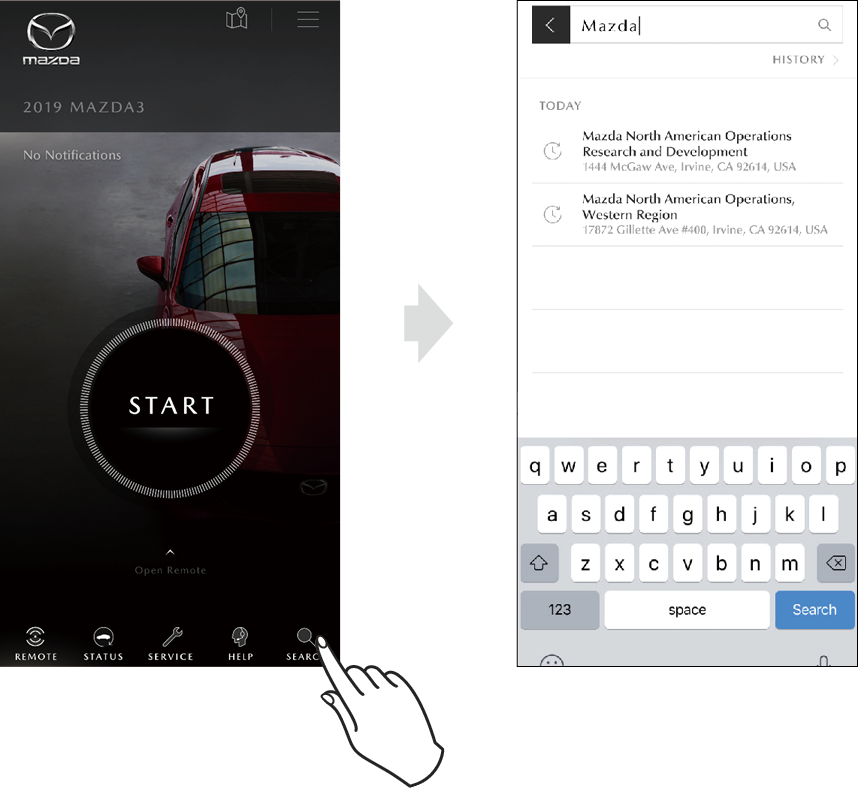 First, use the MyMazda APP and select a destination to be sent to the vehicle.