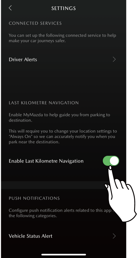 • You can turn the Last Kilometre Navigation function on/off the first time you use the Send to Car function. (Configuration can be changed later)