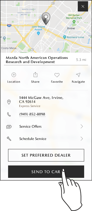 Send to Car is a function which uses the MyMazda APP to search the destination of the navigation and send it to the vehicle.