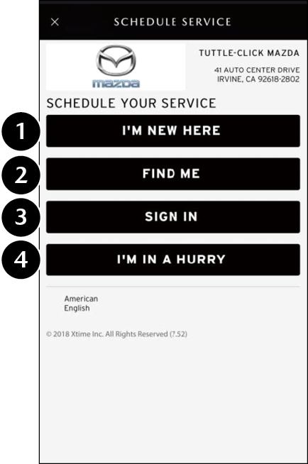 1 I'M NEW HERE Enables a new service appointment to be scheduled.