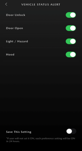 • You can individually set whether or not to receive Vehicle Status Alerts. (Setting items are different from each model.)