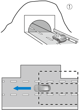 Under the following conditions, the rear side radar sensor cannot detect target objects or it may be difficult to detect them.