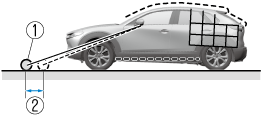If the vehicle is on a slope, obstructions taken by the camera can appear farther or closer than the actual distance from the vehicle.