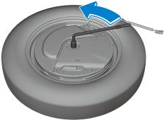 If the spare tire hold-down bolt cannot be loosened, hold the edge of the tire and turn it counterclockwise until the spare tire hold-down bolt rotates.