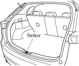 When closing the power liftgate, make sure there are no foreign objects around the striker. If foreign objects are obstructing the striker, the liftgate may not close properly.