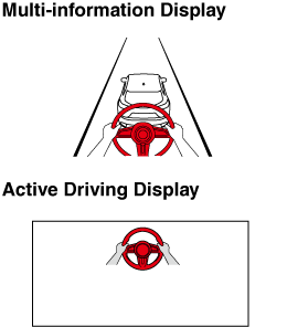 • If you take your hands off the steering wheel, a warning is indicated on the multi-information display and the active driving display. Then, if you continue to leave your hands off the steering wheel, a warning is indicated on the multi-information display and the active driving display and a warning sound is activated.