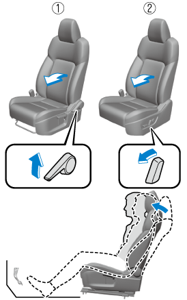 To change the seatback angle, lean forward slightly while raising the lever. Then lean back to the desired position and release the lever.