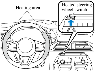 Press the switch to turn on the heated steering wheel. The heated steering wheel operates for about 30 minutes and then turns off automatically.