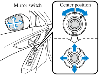 1. Rotate the mirror switch to the left or right to choose the left or right side mirror.