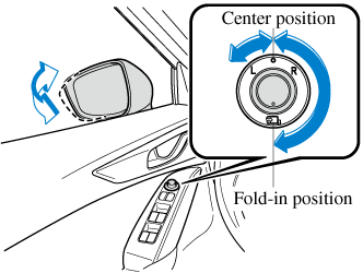 If the outside mirrors do not fold in and out automatically, remove any ice or snow, and then operate the outside mirror switch to fold the outside mirrors in or out.