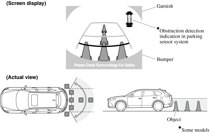 • The displayable range is limited. Objects under the bumper or around the bumper ends cannot be displayed.