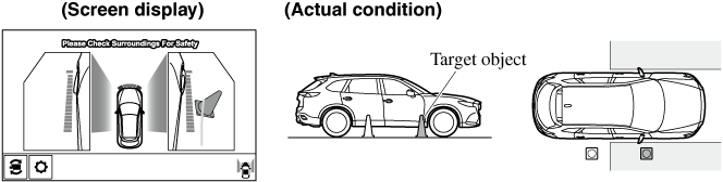 The parking sensor detection range has limitations. For example, obstructions closing in from the side and objects short in height may not be detected. Always confirm the safety around the vehicle visually when driving.