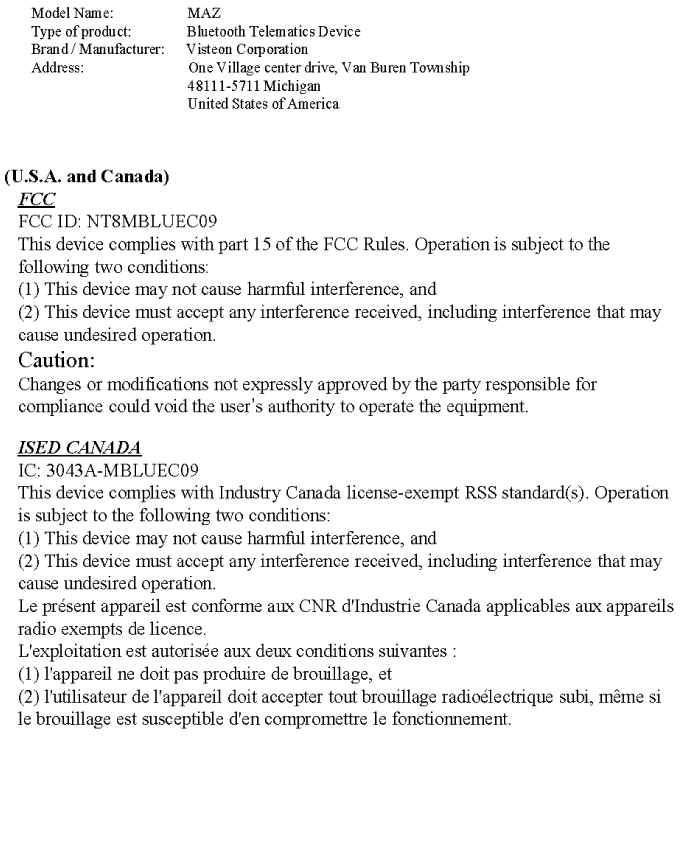 Brand name of the product: Visteon Corporation