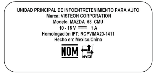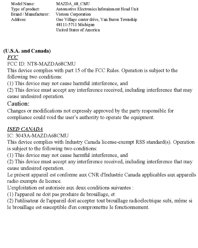 Model name of the product: MAZDA_68_CMU