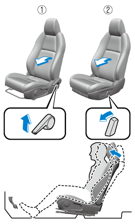 The adjustments for the driving position recommended by Mazda are done using the following procedures.