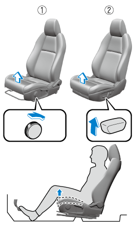 With your right foot set on the accelerator pedal, adjust the height on the front edge of the seat bottom so that the back of your knees lightly contacts the front edge of the seat bottom.