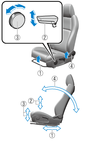 The adjustments for the driving position recommended by Mazda are done using the following procedures.