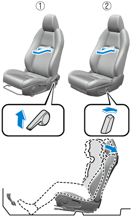 To move a seat forward or backward, raise the lever and slide the seat to the desired position and release the lever.