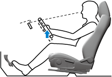 With your back resting against the seatback, extend both arms, place them on the top of the steering wheel, and pull the steering wheel towards you to the position of your wrists.