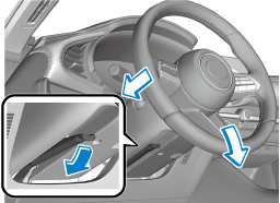 Lower the lever, move the steering wheel to the lowest position, and then push it down and all the way back.
