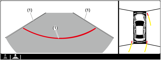 These guide lines indicate the approximate width of the vehicle and distance to a point measured from the rear of the vehicle (from the end of the bumper).
