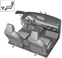 The location airflow exits the air vents and the airflow amount may change depending on the open or close status of the air vents.