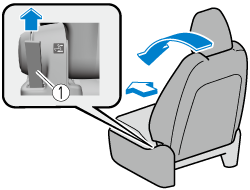 Press the upper side of the angle switch. The seatback folds forward while the switch is being pressed.