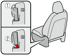 If the vehicle is driven without the seat firmly locked, the seatback could fold down suddenly and cause an accident. In addition, the seat is not locked if the red indication on the walk in strap is visible. Make sure that the seat is firmly locked and the red indication on the walk in strap is not visible.
