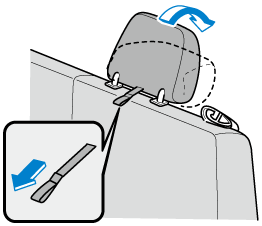 Do not leave the head restraint raised up when folding a seatback. If a seatback is folded while the head restraint is left raised up, the head restraint could contact the front seat depending on the front seat position, and therefore, the front seat, seatback, and the head restraint surfaces could become damaged.