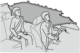 When the air bag crash sensors detect a side impact of greater than moderate force, the curtain air bag inflates quickly and helps to reduce injury mainly to the driver and front and rear outboard passengers' heads caused by directly hitting interior parts such as a door or window.