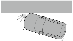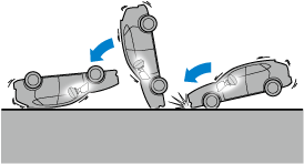 The following illustration is an example of an accident that may not be detected as a roll-over accident. Therefore, the seat belt pretensioners and curtain air bags may not deploy.