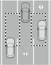 The detection area on this system covers the driving lanes on both sides of the vehicle and from the rear part of the front doors to about 50 m (164 ft) behind the vehicle.
