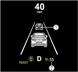 The setting status and operation conditions of the MRCC with Stop & Go function are indicated on the multi-information display and the active driving display.