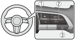 When the RES switch is pressed up (SET+), the vehicle accelerates, and when the RES switch is pressed down (SET-), the vehicle decelerates.