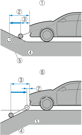 There might be some margin of error between the road surface appearing on the screen and the actual road surface. A margin of error in the perceived distance could lead to an accident, therefore be aware of the following conditions which can more easily produce errors in the perceived distance.